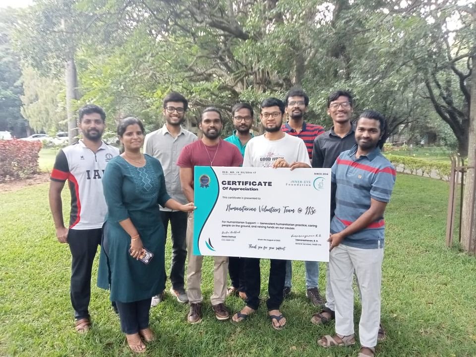 iNNER-EYE is a charitable organization, was established by the Humanitarian Aid Volunteer Team @ IISc, Bangalore in 2016, brings the holistic approach to help and secure old-age & disable community and empower the under-privileged children, women and disabled people on Livelihood, Education, Health & Disaster Relief through our humanitarian practices for its individual and social enhancement with compassion.